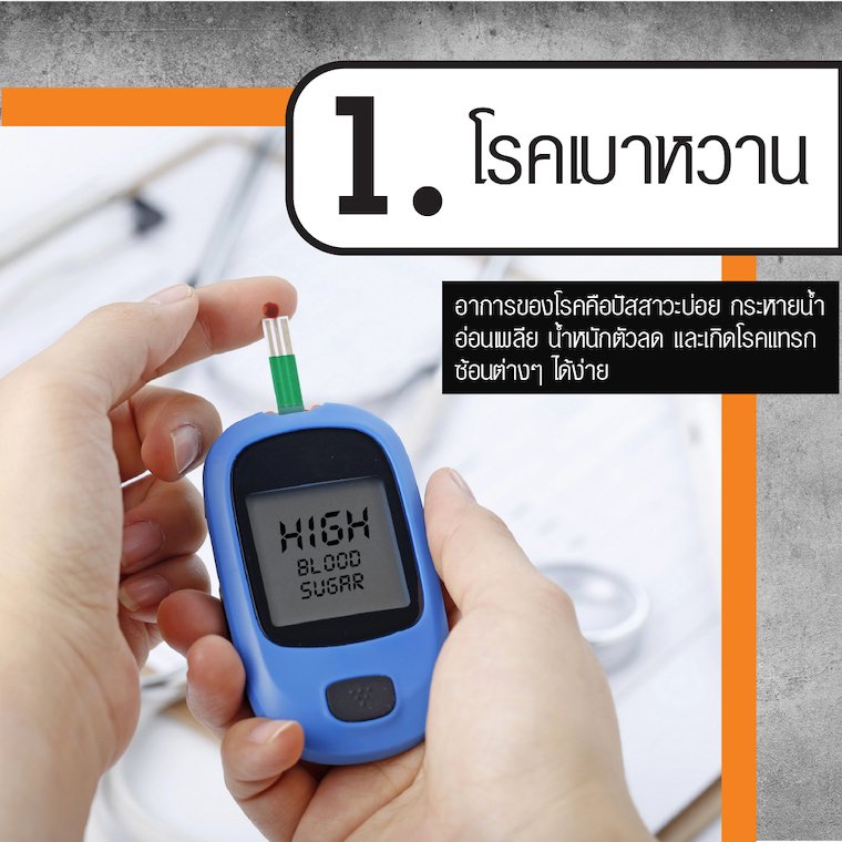 โรคเบาหวาน เป็นโรคที่เกิดจากความผิดปกติของร่างกายที่ผลิตอินซูลินไม่เพียงพอ น้ำตาลในเลือดจึงสูง อาการของโรคคือปัสสาวะบ่อย กระหายน้ำ อ่อนเพลีย น้ำหนักตัวลด และเกิดโรคแทรกซ้อนต่างๆ ได้ง่าย