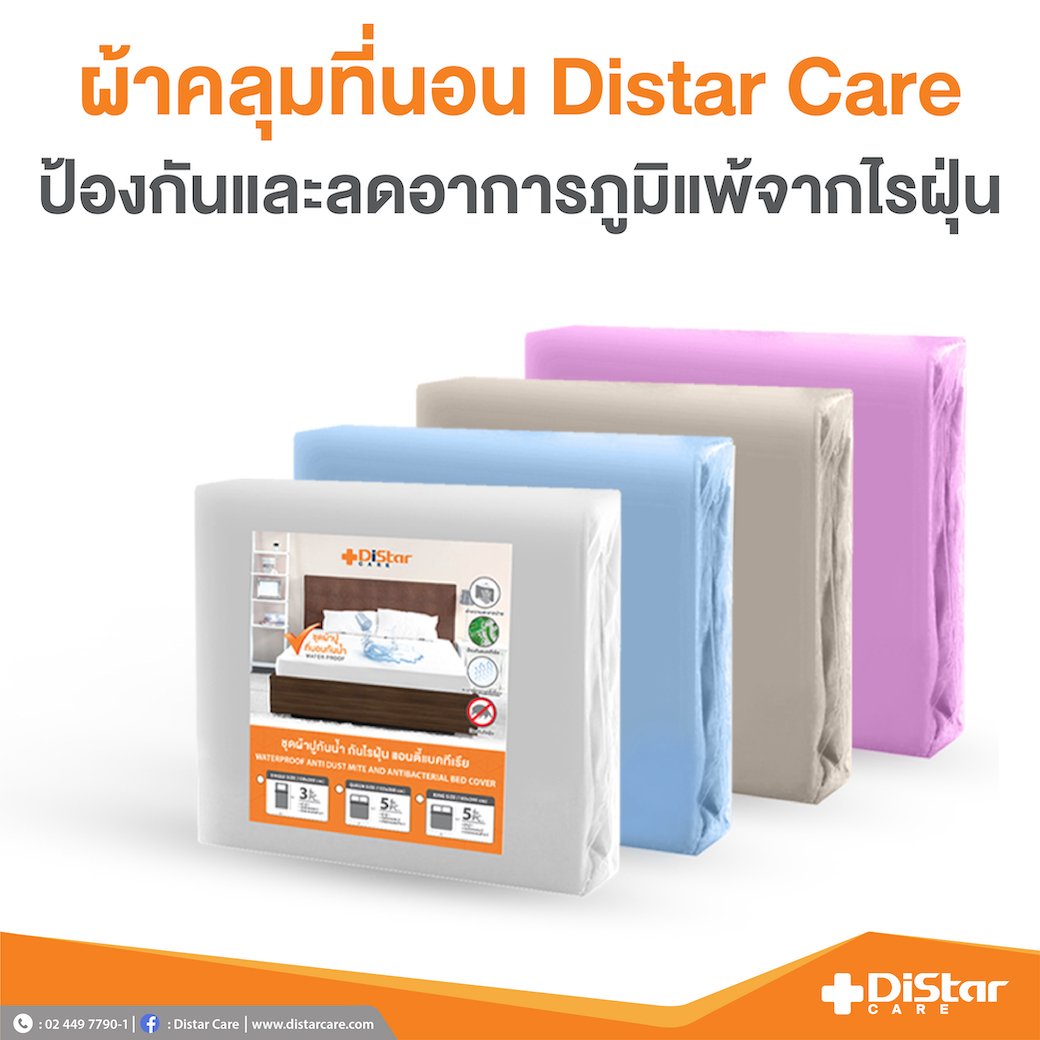 ผ้าคลุมที่นอนกันน้ำ Distar Care ป้องกันและลดอาการภูมิแพ้จากไรฝุ่น โดดเด่นในการถ่ายเทอากาศ อีกทั้งยังให้ความรู้สึกนุ่ม ยืดหยุ่น และทนทาน ใช้งานได้ยาวนาน เอื้ออำนวยต่อสุขภาพของผู้สูงวัย ผ้าคลุมที่นอนกันไรฝุ่น Distar Care มีการทอเส้นใยให้แน่นกว่าปกติ เพื่อป้องกันตัวไรฝุ่นที่แฝงตัวอยู่ในที่นอนเล็ดลอดออกมา อีกทั้งยังป้องกันไม่ให้มีไรฝุ่นจากภายนอกเข้าไปอาศัยอยู่อีกด้วย