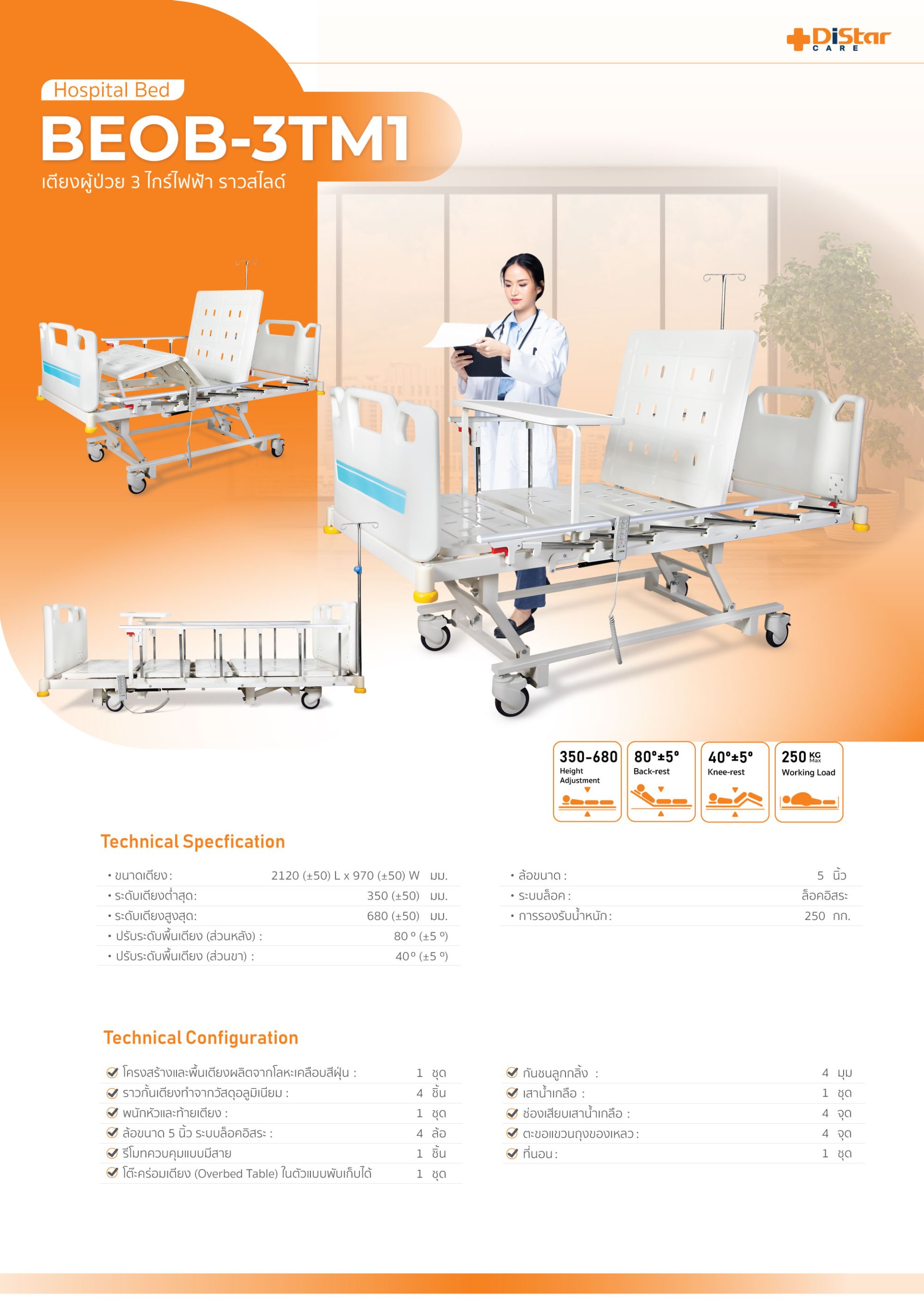 Electric Hospital Bed 3 Function Slide Rail