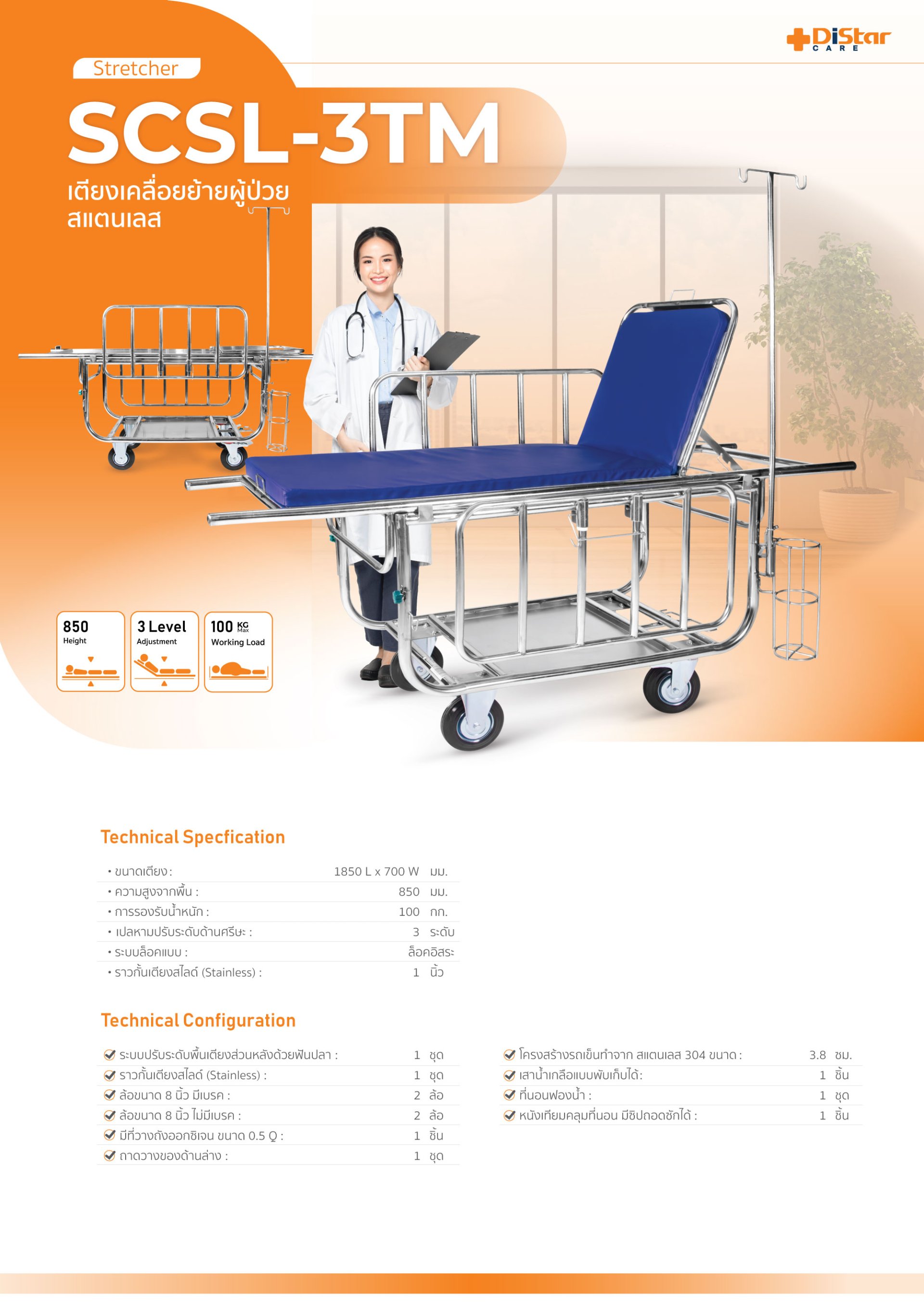 Stainless Steel Transfer Stretcher with IV Pole & Oxygen Holder