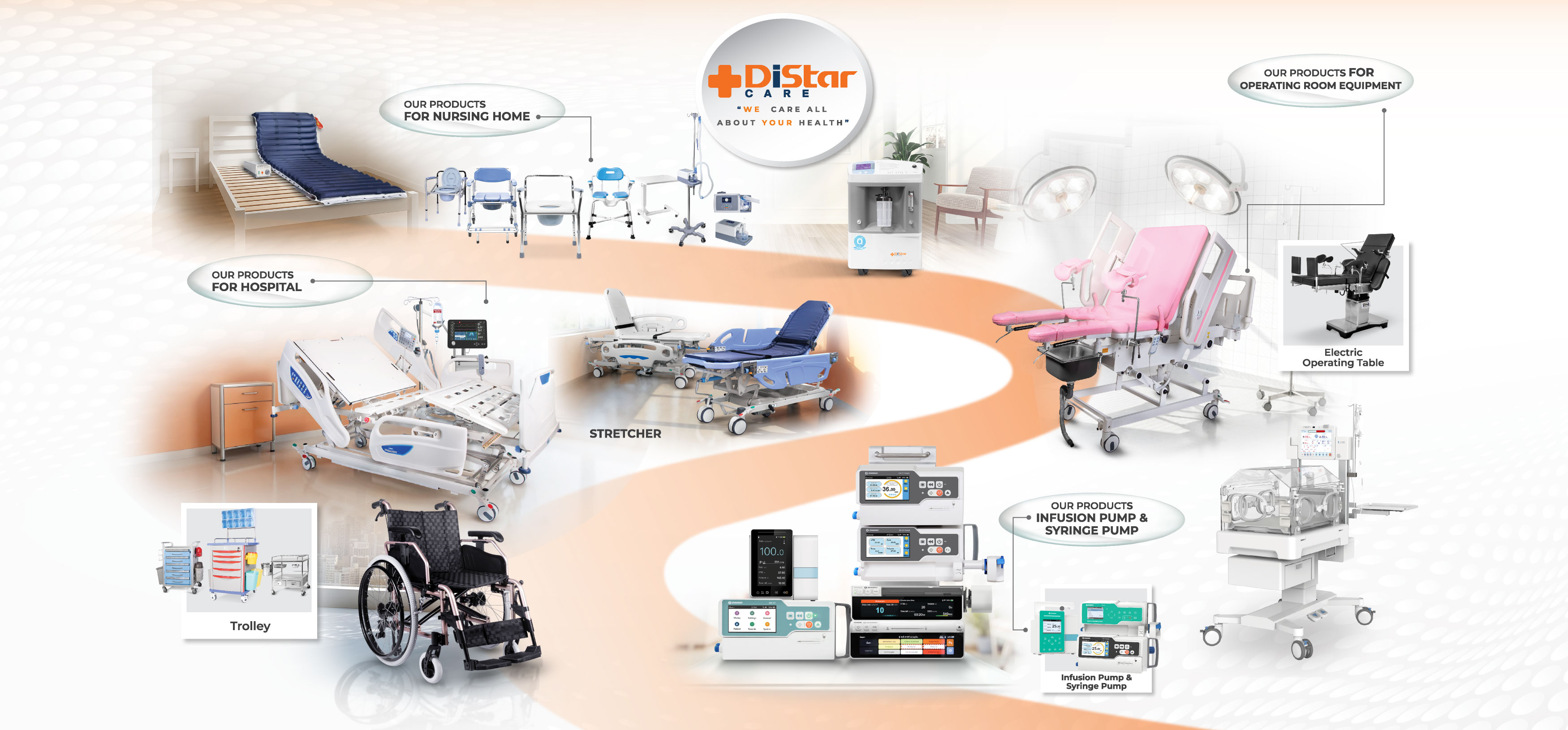 Hospital Bed, Oxygen Concentrator, Patient Trolley,