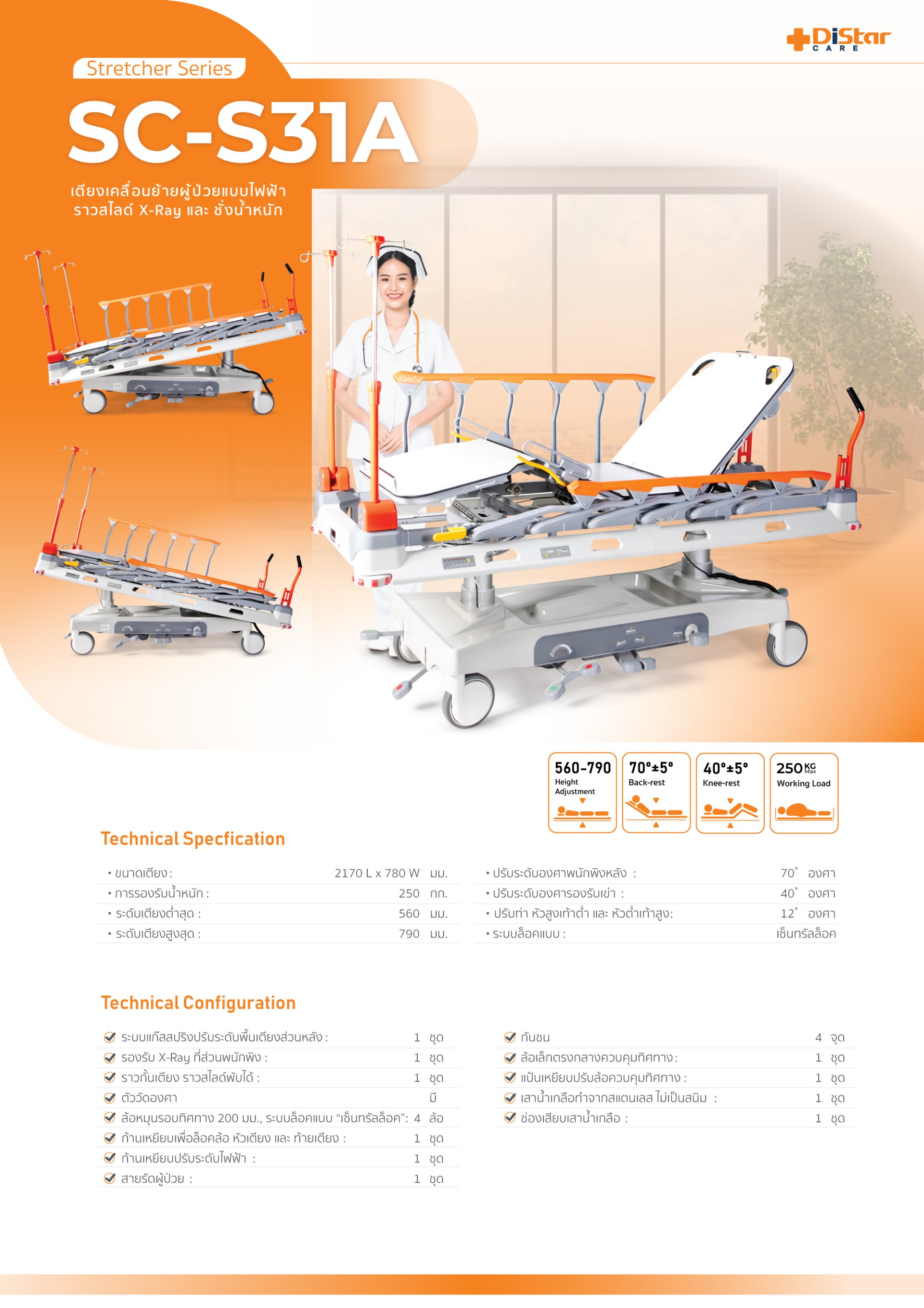 เตียงเคลื่อนย้ายผู้ป่วยแบบไฟฟ้า ราวสไลด์ X-Ray และชั่งน้ำหนัก